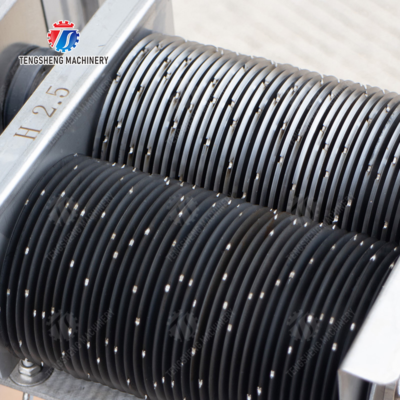 6. Der Werkzeugabstand kann besonders angefertigt werden. Um Fleischscheiben der unterschiedlichen Stärke zu verarbeiten, müssen Sie nur das entsprechende Werkzeug ersetzen.